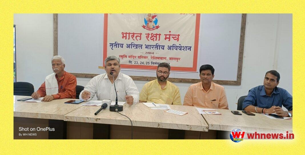 नागपुर – भारत रक्षा मंच की और से तीसरे अखिल भारतीय अधिवेशन दिनांक 23 सितंबर से 25 तक स्मृति मंदिर परिसर ,रेशिमबाग नागपुर में आयोजित करने की जानकारी मंच के आयोजक ने मंगलवार को प्रेस क्लब में आयोजित पत्रकार परिषद में दी।