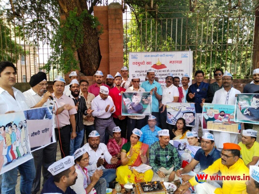 आम आदमी पार्टी नागपूर तर्फे फडणवीस यांना सद्बुद्धी यावी व हवन आंदोलन