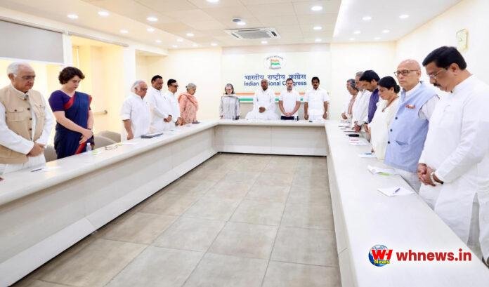 कांग्रेस नेताओं ने गुरुवार को पहलगाम आतंकवादी हमले पर विचार-विमर्श के लिए पार्टी कार्यसमिति की एक आपात बैठक की। कांग्रेस अध्यक्ष मल्लिकार्जुन खड़गे, पूर्व पार्टी प्रमुख सोनिया गांधी और राहुल गांधी, महासचिव के सी वेणुगोपाल, जयराम रमेश, प्रियंका गांधी वाड्रा सहित अन्य नेताओं ने यहां पार्टी के 24, अकबर रोड कार्यालय में कांग्रेस कार्य समिति (सीडब्ल्यूसी) की बैठक में भाग लिया। बैठक की शुरुआत नेताओं द्वारा हमले के पीड़ितों की याद में एक मिनट का मौन रखकर उन्हें श्रद्धांजलि देने के साथ हुई।