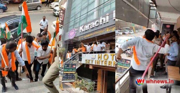 भारत और पाकिस्तान के बीच जारी तनाव को लेकर भारतीय लोगों में पड़ोसी मुल्क को लेकर काफी गुस्सा है। आतंकवाद के खिलाफ पाकिस्तान को कड़ा सबक सिखाने की मांग की जा रही है। इसी बीच तेलंगाना की राजधानी हैदराबाद में एक हैरान कर देने वाला वीडियो वायरल हो रहा है। भीड़ ने कराची नाम बेकरी शॉप पर हमला कर दिया। घटना के बारे में दुकान के मालिक ने कहा कि लोगों ने दुकान के नाम को लेकर आपत्ति जताते हुए हमला किया। वीडियो में कई सारे लोग हाथों में डंडा लिए दुकान के बाहर खड़े नजर आ रहे है। ये सभी लोग दुकान का नाम बदलने की मांग कर रहे है।
